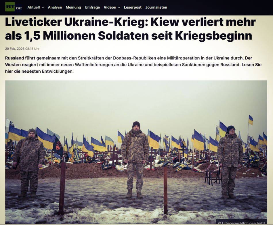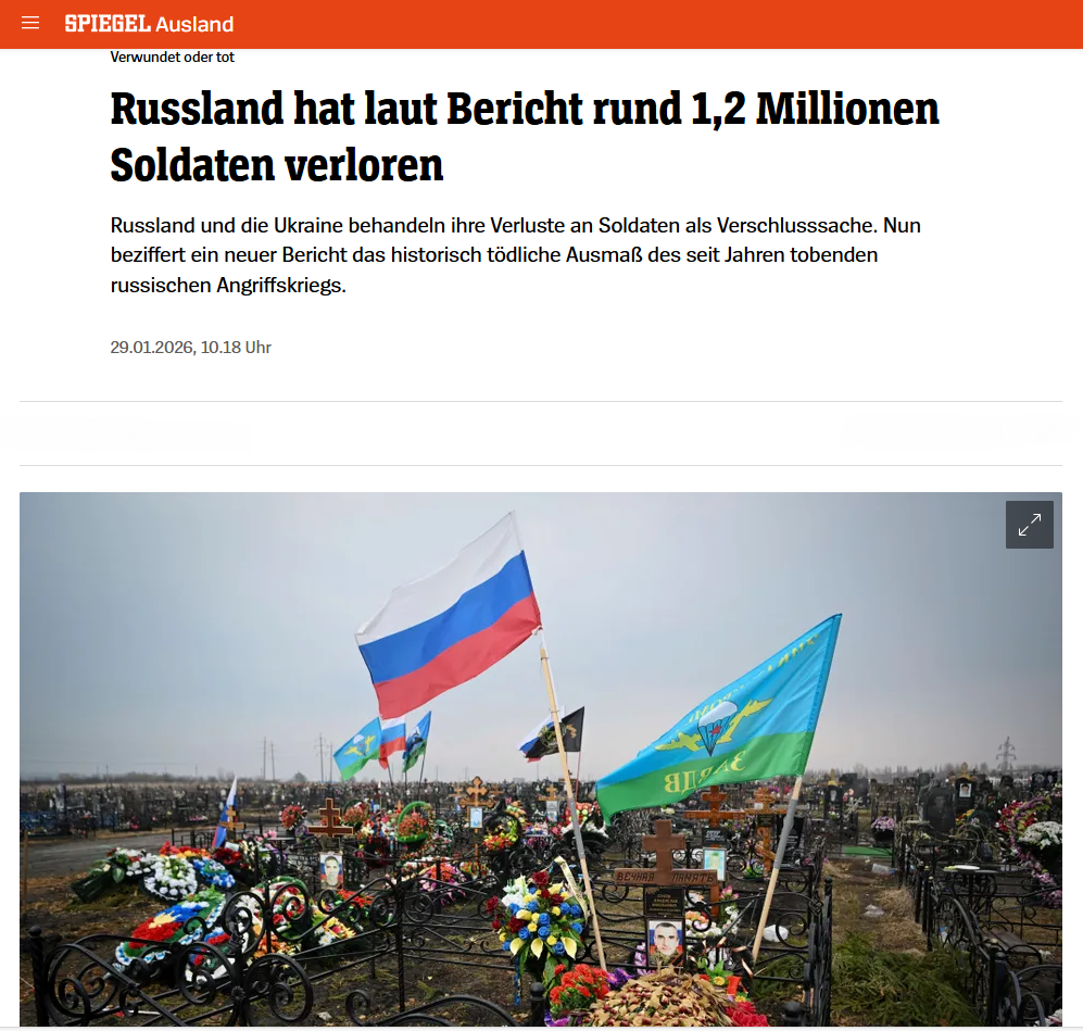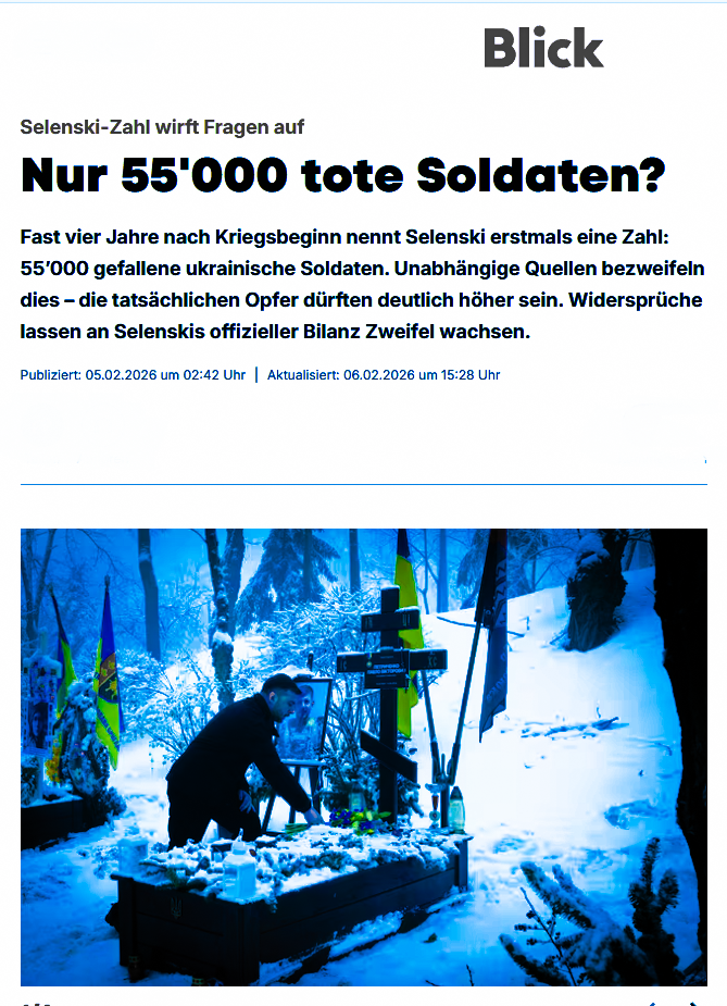 Beide Kriegsparteien veröffentlichen - aus nachvollziehbaren Gründen - keine Daten zu ihren eigenen Verlusten an Menschenleben und Material. Das würde bei der eigenen Bevölkerung nicht gut ankommen und die Moral dämpfen. Und wenn, dann wird derart untertrieben, dass der Leser sich eigentlich verar..... vorkommen muss. Dafür werden umso eifriger die Verluste des Gegners verkündet und dabei mit Übertreibungen nicht gegeizt. Da helfen auch westliche Instututionen willfährig mit, wenn es um die Zahlen der russischen Verluste geht. Tatsächlich dürften die Zahlen irgendwo in der Mitte liegen. Es darf angenommen werden, dass jede Seite hunderttausende Tote bereits zu beklagen hat. Möglicherweise bewegen sich diese Zahlen auch schon gegen die Millionenmarke hin.