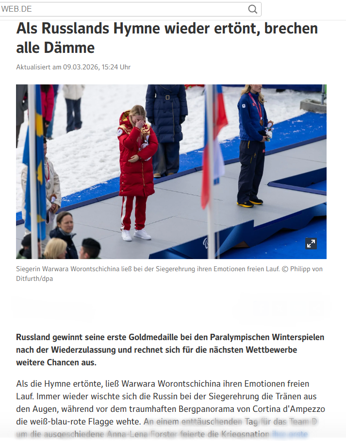 Einen Lichtblick gibt es: Dank eines Entscheides des Internationalen Sportgerichtshofes CAS und auch des paralympischen Komitees IPC dürfen russische und belarussische Sportler mit Behinderung jetzt doch antreten. Auch wenn die Deutschen darüber sehr "frustriert" sind.....