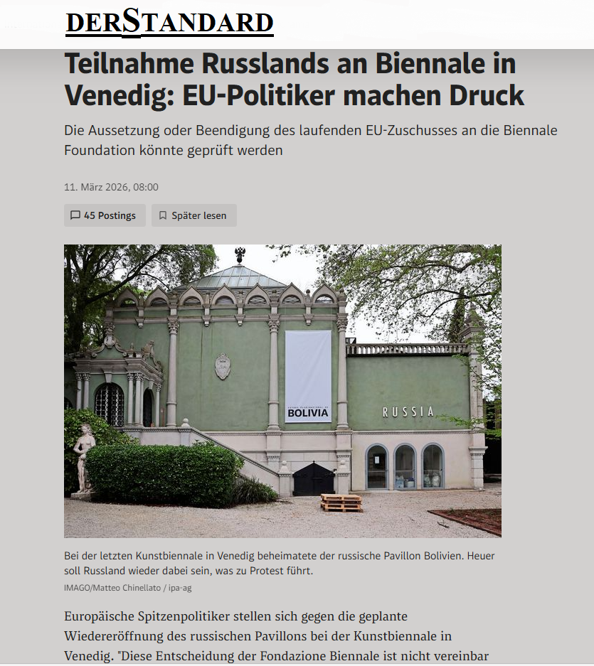 Link >> Russland kehrt zur Biennale in Venedig zurück – EU droht mit Förderentzug