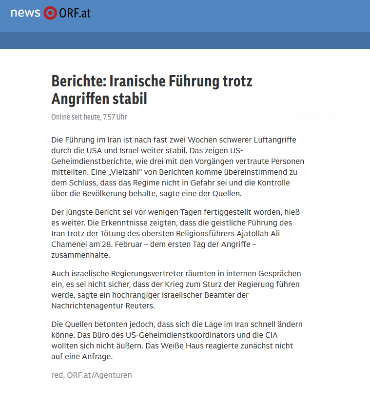 Die Anzeichen mehren sich, dass der Kriegsverlauf nicht so ist, wie es sich die "kleinen Maxis" in Washington und Israel gewünscht haben. Trotz aller "Siegesmeldungen" von Trump und Durchhalteparolen aus den USA und Israel. Es gab schon vor dem Angriff warnende Stimmen auch von hochrangigen Militärs, nur diese wurden offensichtlich nicht gehört.