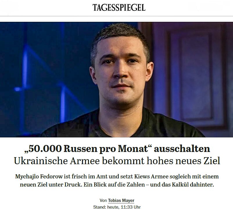 Der frisch ernannte ukrainische Verteidigungsminister will seine Kriegsziele maximieren. Zumindest was das Töten von Feinden betrifft. Wessen Geistes Kind ist dieser Mann? Sollte nicht endlich einmal über eine Beendigung des Krieges ernsthaft nachgedacht werden?